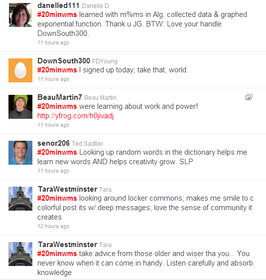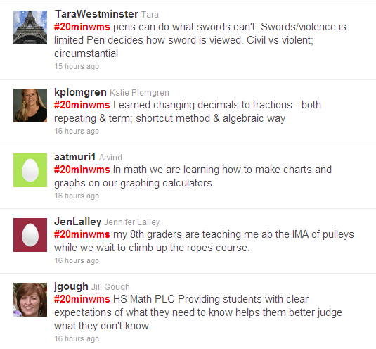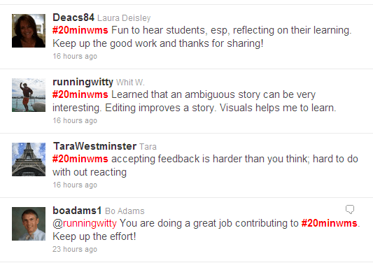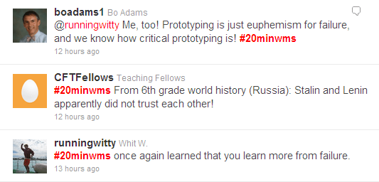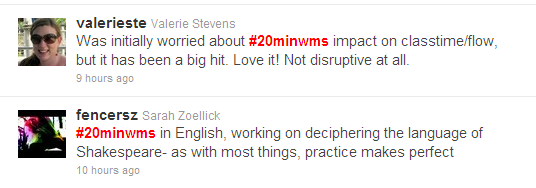 “Was initially worried about #20minwms impact on class time/flow, but it has been a big hit. Love it! Not disruptive at all.” ~ @valerieste