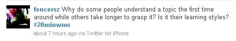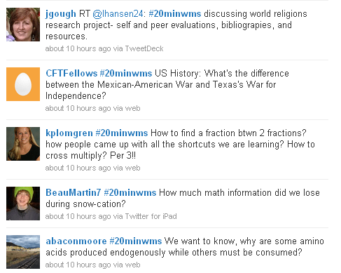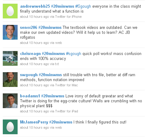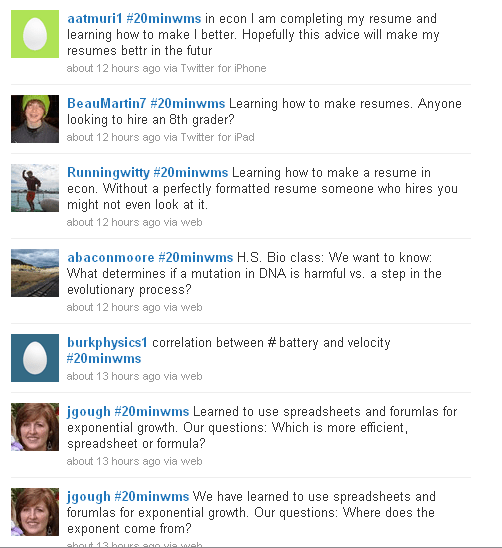 My learners made me tweet twice at the 20 minute mark in Algebra I. They were consistent as a whole group about what they learned, but their questions were split into to categories.