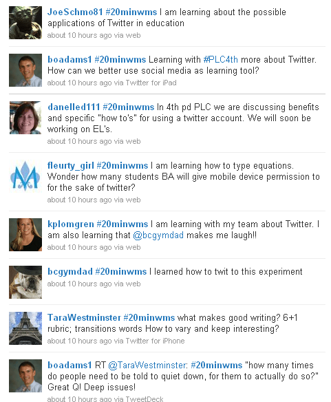 You can also read about the 4th Period PLC’s learning about social media in the series of tweets below. As we learn together, we become more confident using the technology, implementing the primacy-recency practitioner’s corner, and trying a different type of formative assessment.