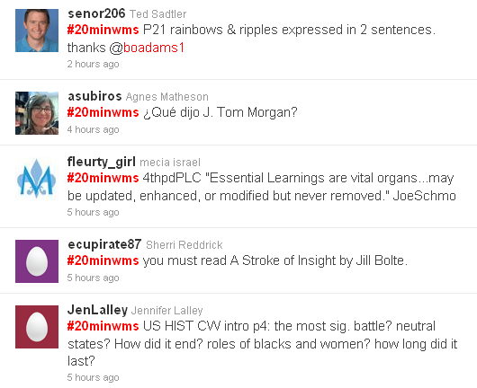 […] Global Physics Department and EduSalon and Edu180Atl and the Twitter #20minwms Experiment (here, here, and here, too), you are showing many how to build a tribe of committed, talented, forward-thinking […]