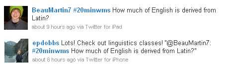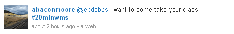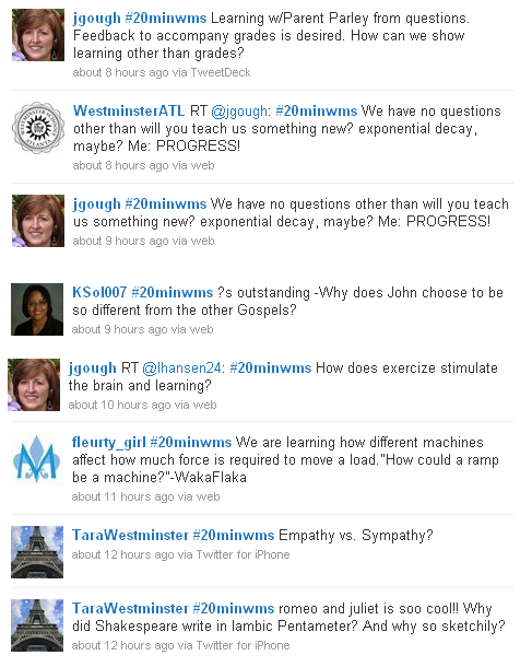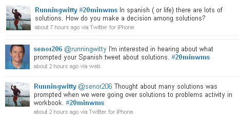 You should know that I took images of these tweets at 8:30 pm. @senor206’s tweet and @Runningwitty’s reply were both tweeted around 6:30, well after the end of the traditional school day. The learning, thinking, and conversation do not turn off with the bell.