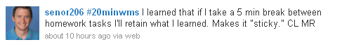 Do I document that it was reported that taking a 5 minute break between homework tasks makes the learning “sticky”?