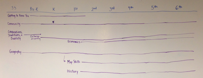 This is the image from the ELD/ULD meeting. I started with drawing the image from the VELD first and then we just continued it… We had some great discussions! Everyone felt very encouraged to see the “big picture” after spending so much time with the SS google doc.In the ELD/ULD meeting, we also had a discussion about the 10 standards that the National Council for Social Studies offers and how we might use this language or some of this language in our curriculum maps.Overall, I think that the work that needed to be done in a vertical environment is complete. Each grade level needs to work on their section of the document during team meetings in order to edit and finalize some of the work.