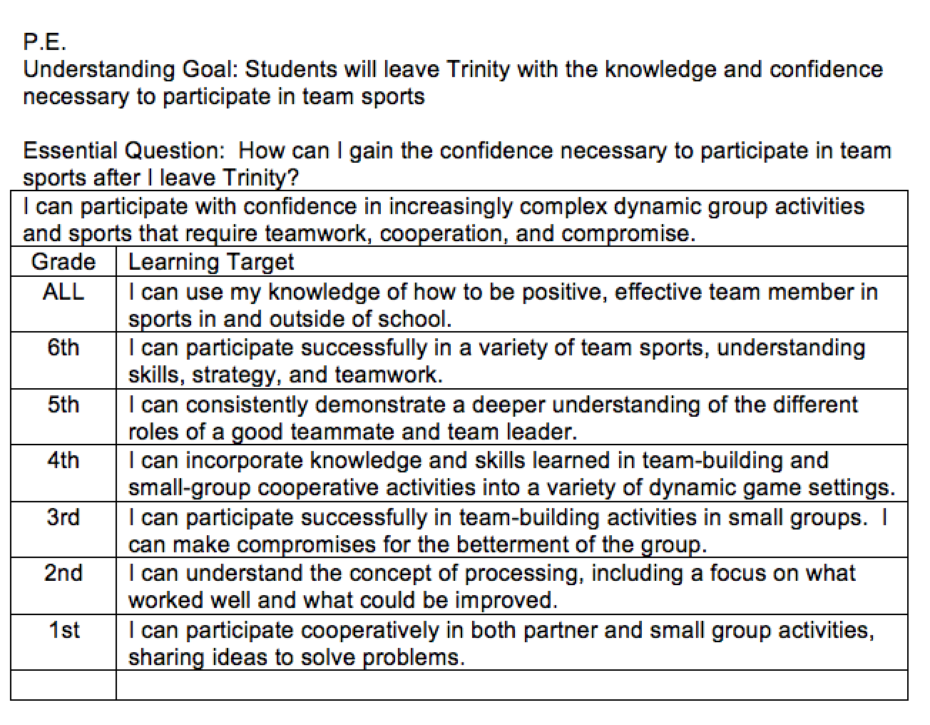 “It will be helpful for someone to look at our grid and see where the holes are. What are we supposed to be teaching that we’re not? What are our 5th graders supposed to know before they get to us, and what do we do if they don’t? What does 6th grade want us to introduce?”