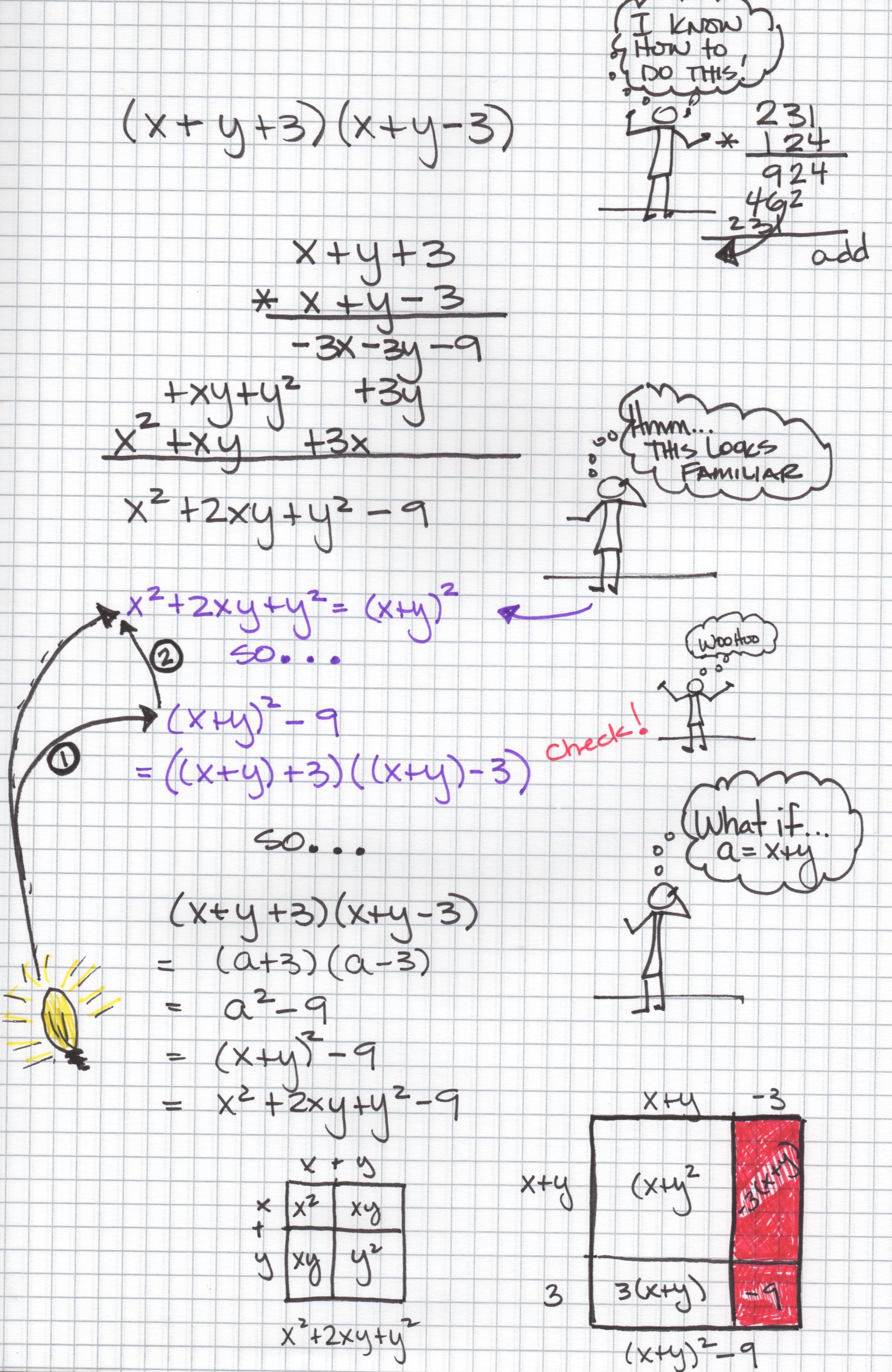 Which of these product rules could be used to quickly expand (x+y+3)(x+y-3)? Now, try expanding the expression.