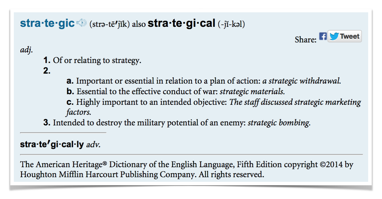 “The American Heritage Dictionary Entry: Strategically.” American Heritage Dictionary Entry: Strategically. N.p., n.d. Web. 08 Sept. 2014.