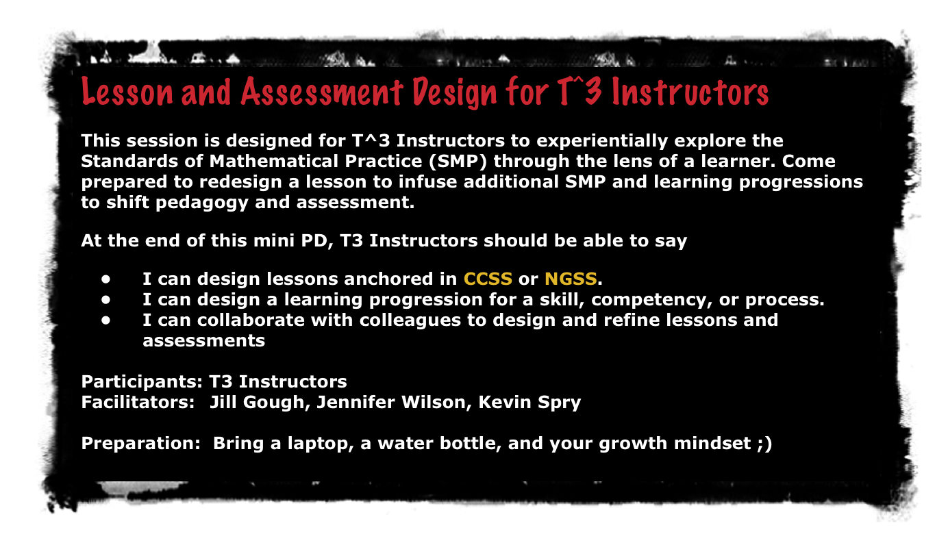 On Saturday, a small cadre of T3 Instructors gathered to learn together, to explore learning progressions, and to dive deeper in understanding of the Standards for Mathematical Practice.