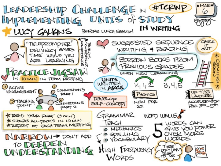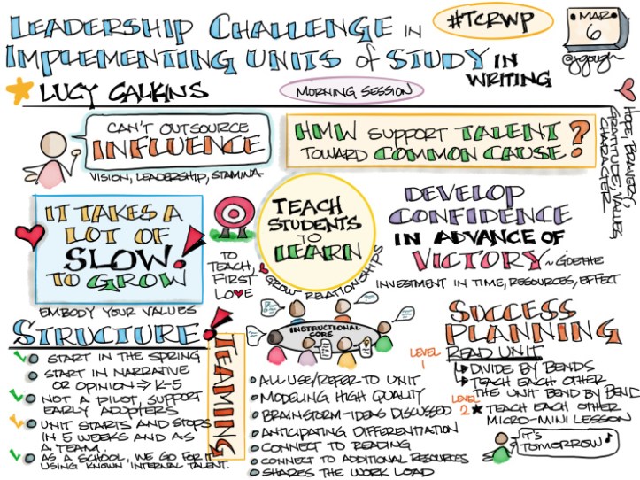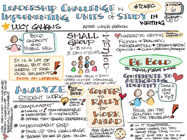 Marsha Harris and I attended Lucy Calkin’s Leadership Challenge in Implementing Units of Study in Writing. This conference is designed to help school leaders support best practices in the teaching of writing. Rally learners to invest heart and soul in raising the level of work in writing.