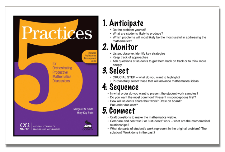 To embolden mathematicians and to prepare to elicit and use evidence of student thinking, teaching teams must practice to develop the habits put forth in 5 Practices for Orchestrating Productive Mathematics Discussions.