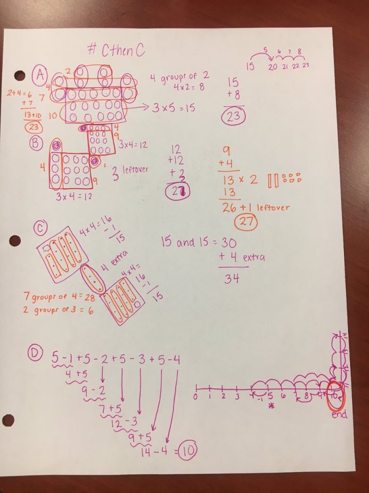 This week’s session began with a gallery walk using Amy Lucenta and Grace Kelemanik’s first five Contemplate then Calculate (#CthenC) lessons found on at Fostering Math Practices.
