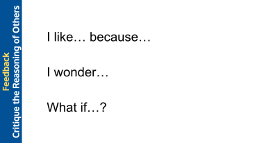 First, they read my entry silently and analyzed it using the given success criteria. Next, with a partner, they discussed what they read, what they thought, and if they agreed on their ratings? Then, we began to develop critique using the starters shown below.