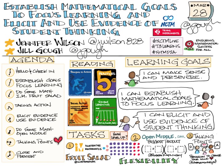 On Wednesday, March 28, 2018, Jennifer Wilson (@jwilson828) and I co-facilitated the first webinar in a four-part series on the Eight Mathematics Teaching Practices from NCTM’s Principles to Actions: Ensuring Mathematical Success for All.