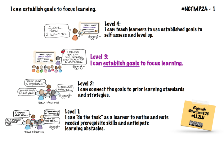 The 5th Grade team drafted the following learning progressions to make their thinking visible to our new students. As a team, they have established these goals for students. (Level 3 for I can establish goals.)