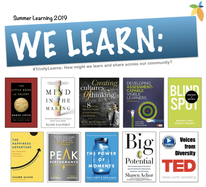 What are you reading/watching/doing to grow as a learner over the summer? Please feel invited and encouraged to watch us (or join us) learn by following #TrinityLearns and #TrinityReads in June and July.