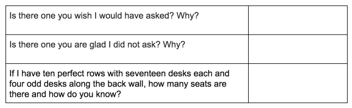 1. I have tried this out with third graders and it gives really useful information about how they think and feel about multiplication facts. I especially like the images. Some of my interviewees counted one by one with pictures, so it might be useful for that to be a choice. What if there was space to make note of the specific strategies used by students?