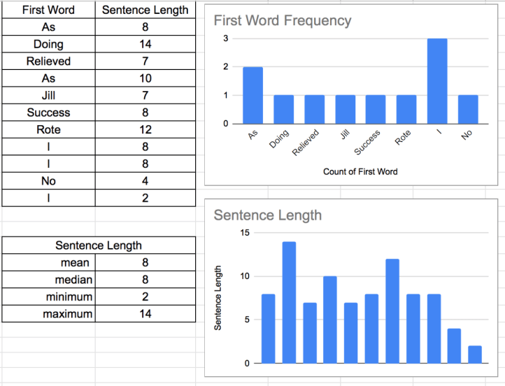 Still ending that sentence with an adverb, I enjoyed playing with ideas and with sentences. Here’s the structure with a sentence checkup.