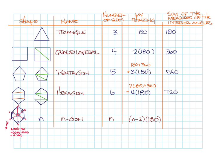 And, in the last few minutes, we extended this thinking to geometric subitizing and then the sum of the measures the interior angles of polygons.
