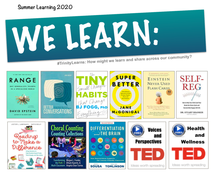What are you reading/watching/doing to grow as a learner? What do you want to read/watch/do to grow over the summer? Please feel invited and encouraged to watch us (or join us) learn by following #TrinityLearns and #TrinityReads in June and July.
