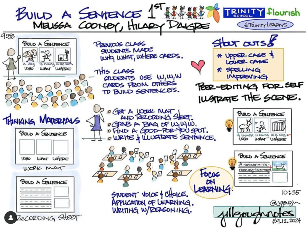 We agreed that I would observe on September 12. To observe, I try to find a quiet spot where I can sketch-note the observed lesson. When the observation concluded, I immediately sent my sketch to the observed teacher(s) and posted the following on Instagram.