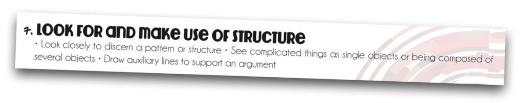 - Have we taught students how to look for and make use of structure? What might that mean in the context of this task?