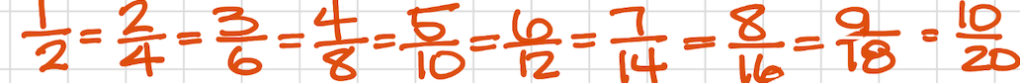 Here’s my work on this task using structure so that I know I’ve found the equivalent fractions that solve this Open Middle task.