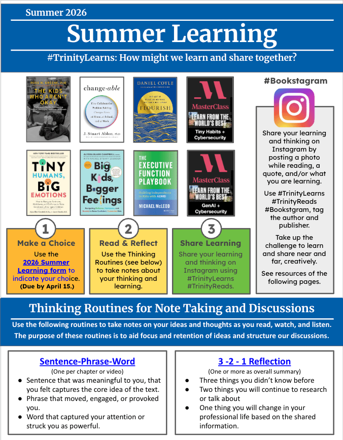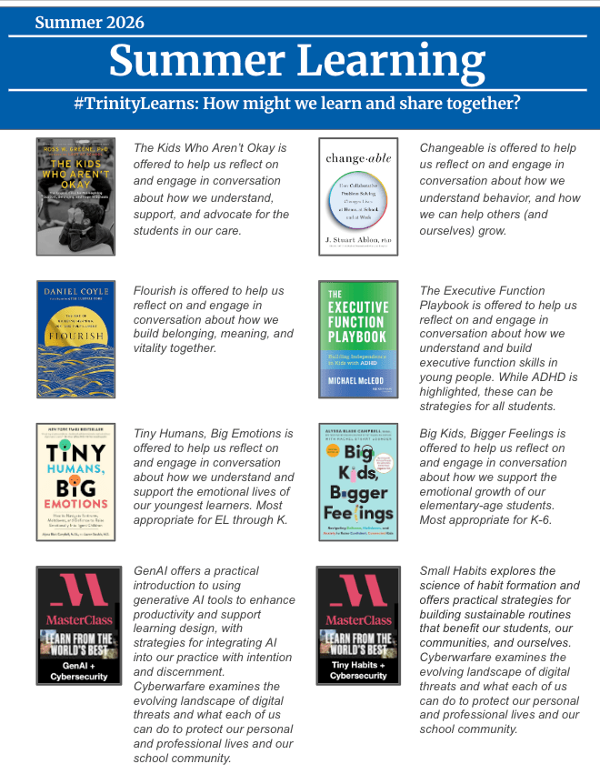 How do we learn and grow when we are apart? We make a commitment to read and learn every summer. We launched the following choices for summer professional learning: reading and watching.